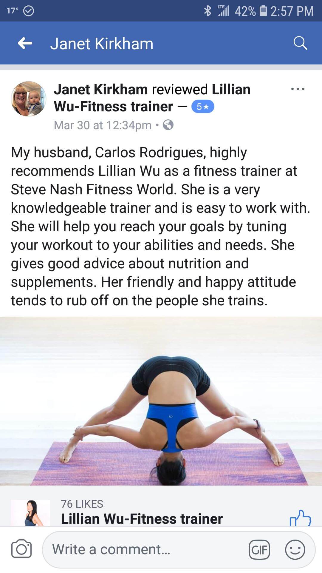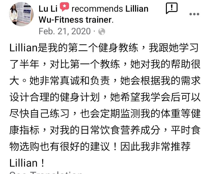 My name is Lillian and I am a Fitness and Wellness coach in Vancouver. I am passionate about helping everyone become their healthiest selves. I emphasize functional teaching methods and focus on each client’s current fitness level, gradually improving the strength and movements they need for their daily lives or sports while reducing their pain and injury risks.